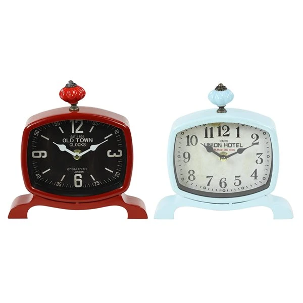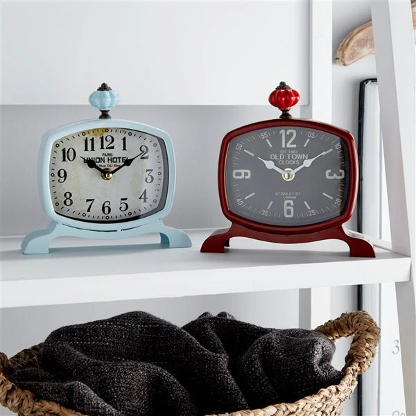 - Stylish and functional, this set of table clocks is ideal as accent table decor pieces for your vintage-styled space with their gourd-shaped finials, wide serpentine feet, and bold numbers