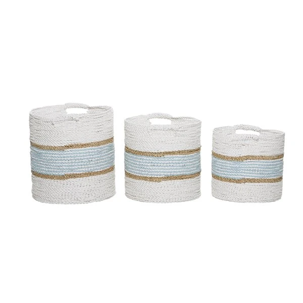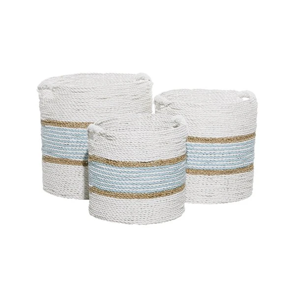 GRAYSON LANE Set of 3 16 In., 14 In., 13 In. Coastal Storage Basket White