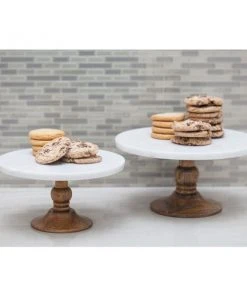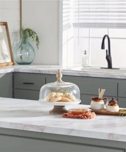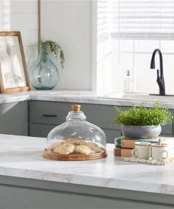 Grayson Lane 10-in x 13-in Natural Cake Stand with Cloche – Brown Wood and Glass