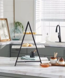 Grayson Lane 23-in x 20-in Contemporary White Marble and Ion 3 Tier Tray Stand