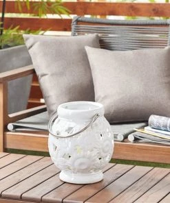 Grayson Lane 1 Candle White Ceramic Lantern Contemporary Candle Holder