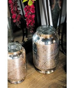 Grayson Lane 1 Candle Glass Copper Lantern Rustic Candle Holder