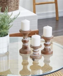 Grayson Lane 1 Candle Brown Wood Pillar Candle Holder – Set of 3