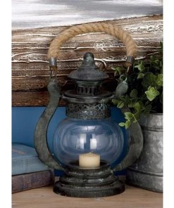 Grayson Lane 1 Candle Metal Lantern Coastal Candle Holder – Grey
